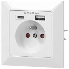 Orno Εντοιχισμένες πρίζες επίπλων με επίπεδη φρεζαρισμένη άκρη, φορτιστή USB και καλώδιο 1,5m, 2x2P+Z, 2xUSB (τύπος A+C| 3,6A), λευκό