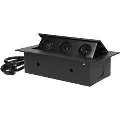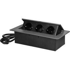 Orno Ενσωματωμένη πρίζα επίπλων με επίπεδη φρεζαρισμένη άκρη, 3x2P+Z (Schuko), μαύρο