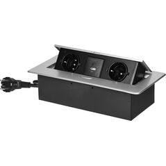 Orno Εντοιχισμένη πρίζα επίπλων με επίπεδη φρεζαρισμένη άκρη και φορτιστή USB, 2x2P+Z (Schuko), 2x USB (τύπος A+C| 3,6A), μαύρο