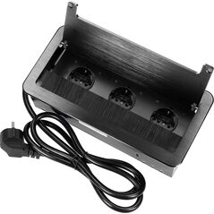 Orno Ενσωματωμένη πρίζα επίπλων με επίπεδη φρεζαρισμένη άκρη, βούρτσα κατά της σκόνης και καλώδιο 1,5μ, 3x2P+Z (Schuko), μαύρο