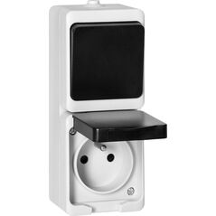 Orno Μονόπολος διακόπτης + Πρίζα 2P+Z AQUATIC MINI IP54 λευκό-μαύρο