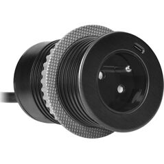 Orno Ενσωματωμένη πρίζα επίπλων με επίπεδη φρεζαρισμένη άκρη, φορτιστή USB και καλώδιο 1,5μ, 2x2P+Z (Schuko), 2xUSB (τύπος A+C| 3,6A), μαύρο