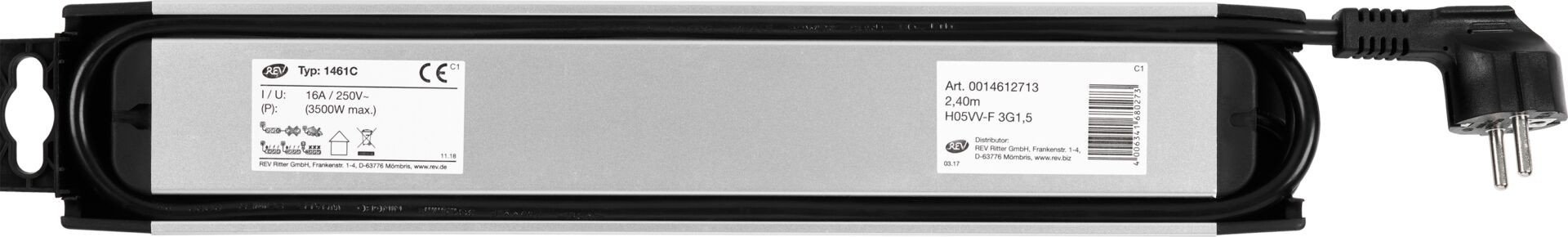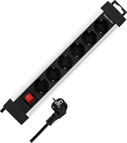 REV REV Πολύπριζο 6 θέσεων 2,4m Supraline με διακόπτη ασημί