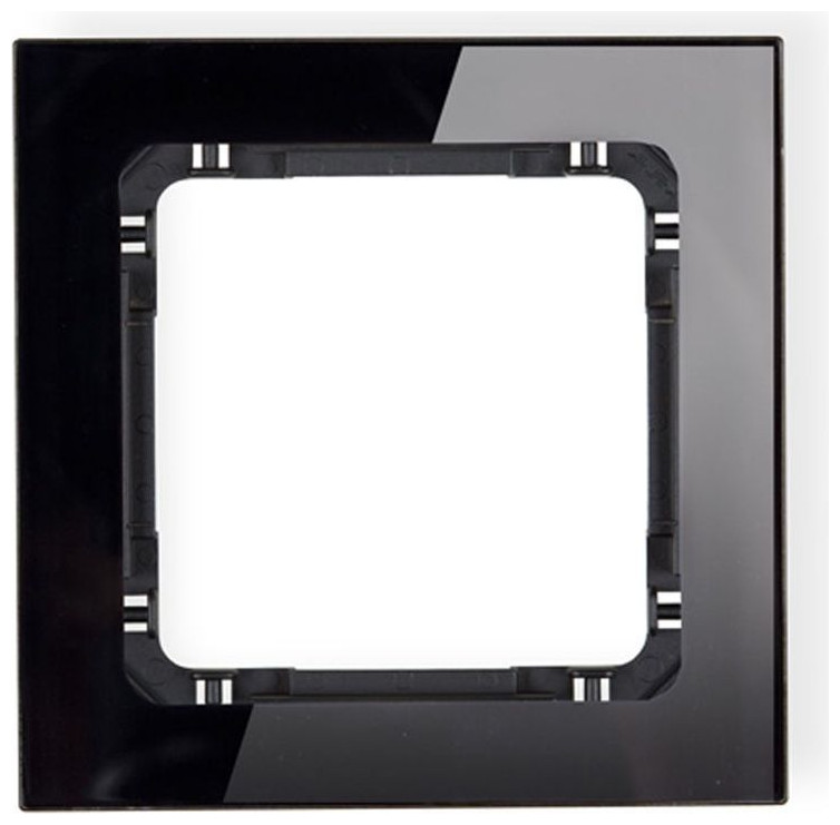Deco πλαίσιο Μονό πλαίσιο μαύρο/μαύρο γυάλινο εφέ από τη σειρά Karlik Deco.{Type} Single . {Type} Single . {Επίπεδο προστασίας} IP20. {Επίπεδο προστασίας} IP20. {Color} Εφέ μαύρου γυαλιού. {Color}Εφέ μαύρου γυαλιού