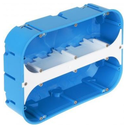 .Κουτί τοποθέτησης χωνευτό.. Το κουτί είναι κατασκευασμένο από αυτοσβενόμενο υλικό χωρίς αλογόνο, προορίζεται για τοποθέτηση σε κοίλους τοίχους (γυψοσανίδα, γυψοσανίδα)... Δυνατότητα κάθετης ή οριζόντιας τοποθέτησης..