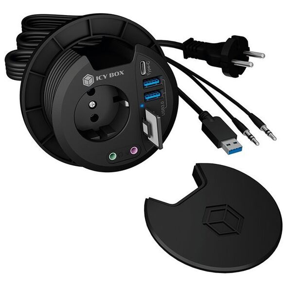 ICY BOX IB-HUB1430-CR. Interfejs hosta: USB 3.2 Gen 1 (3.1 Gen 1) Type-A, Interfejsy hub: 3.5mm, USB 3.2 Gen 1 (3.1 Gen 1) Type-A, USB 3.2 Gen 1 (3.1 Gen 1) Type-C, Obsługiwane typy kart pamięci: MicroSD (TransFlash), SD. Realna szybkość przesyłania danych: 5000 Mbit/s, Kolor produktu: Czarny, Materiał obudowy: Plastik. Typ zasilacza: Prąd przemienny, Napięcie: 230 V, Typ wtyczki zasilającej: Type F (CEE 7/4). Szerokość produktu: 110 mm, Głębokość produktu: 110 mm, Wysokość produktu: 60 mm. Ilość na paczkę: 1 szt., Szerokość opakowania: 117 mm, Głębokość opakowania: 117 mm