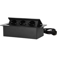 Πρίζα επίπλων Orno ενσωματωμένη στον πάγκο με επίπεδη φρεζαρισμένη άκρη και πλήρη κάτω κατασκευή καθώς και καλώδιο 1,5μ, 3x2P+Z (Schuko), μαύρο