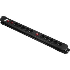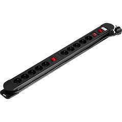 Orno Πολύπριζο, 10 υποδοχές 2P+Z, καλώδιο 3x1,5mm2, μήκος 1,5m, 2xΔιακόπτης φωτιζόμενος διπολικός, Θερμικός διακόπτης. 16A/230 VAC, Μαύρο