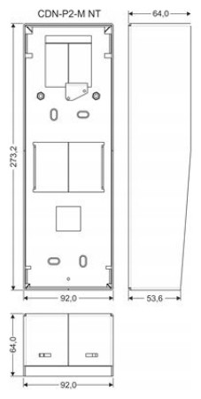 OBUDOWA NATYNKOWA CDN-P2-M-NT ACOSPECYFIKACJA Kompatybilność: CDNP7ACC Ilość modułów: 1 x domofon + 1 x mały moduł dodatkowy Materiał wykonania: Stal kwasoodporna Montaż: Natynkowa Waga: 1.081 kg Wymiary wewnętrzne: 270 x 89 x 43 mm Wymiary zewnętrzne: 273 x 92 x 64 mm Producent / Marka: ACO Gwarancja: 2 lata