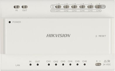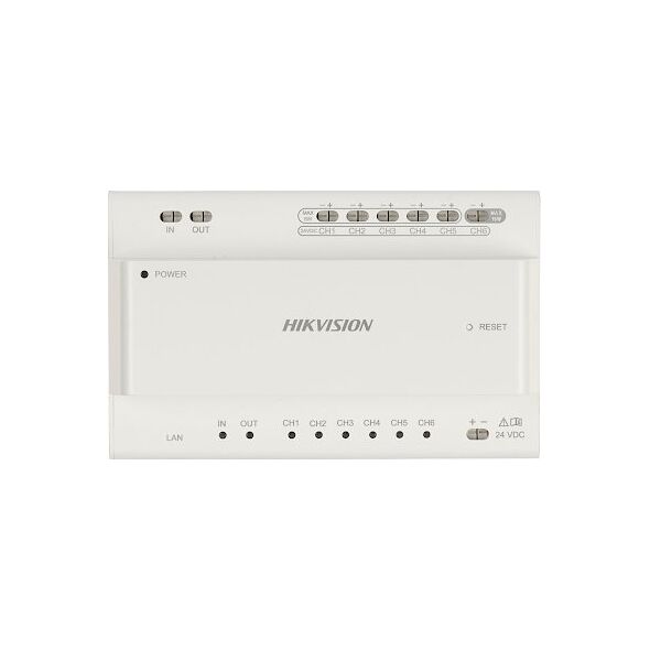 SWITCH DS-KAD706Y DLA 2-PRZEWODOWYCH SYSTEMÓW WI Hikvision Urządzenie posiada 6 magistral 2-przewodowych do podłączenia monitorów i paneli zewnętrznych (zasilanie oraz transmisja sygnału) oraz 1 gniazdo Ethernet do podłączenia sieci LAN; Dodatkowo jeden z portów jest przystosowany do zasilenia rozbudowanej stacji bramowej o maksymalnym poborze mocy 16W;Waga: 0.4900 Długość: 245 Szerokość: 165 Wysokość: 105 Urządzenie posiada 6 magistral 2-przewodowych do podłączenia monitorów i paneli zewnętrznych (zasilanie oraz transmisja sygnału) oraz 1 gniazdo Ethernet do podłączenia sieci LAN Dodatkowo jeden z portów jest przystosowany do zasilenia rozbudowanej stacji bramowej o maksymalnym poborze mocy 16W Ponadto switch jest wyposażony w dodatkowe wyjścia magistrali 2-przewodowej służące do kaskadowego połączenia z DS-KAD706Y / DS-KAD706Y-S Switch można również połączyć z siecią LAN, co pozwala na dostęp do otwarcia bramy oraz możliwość odebrania połączenia z wideodomofonu za pośrednictwem aplikacji mobilnej W przypadku łączenia kaskady urządzeń z siecią LAN, zaleca się przyłączenie do niej switcha DS-KAD706Y-S Ilość portów: 6 x HIKVISION 2-wire ( 1 x max. 16 W ) , 2 x HIKVISION 2-wire - Uplink 1 x RJ-45 Kompatybilność: HIKVISION 2-wire - seria YWybrane cechy: Możliwość łączenia kaskadowego montaż na szynie DIN, TS-35Zasilanie: 24 V DCPobór mocy: < 6 W - CH1 ... CH5 < 16 W - CH6 Obudowa: PlastikowaTemperatura pracy: -10 °C ... 55 °CWaga: 0.27 kgWymiary: 144 x 90 x 66 mmSAP Code: 305303644 Producent / Marka: HikvisionGwarancja: 3 lata
