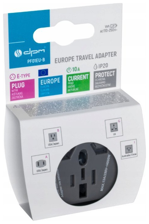 Προσαρμογέας ταξιδιού DPM Ευρώπη, μαύρος