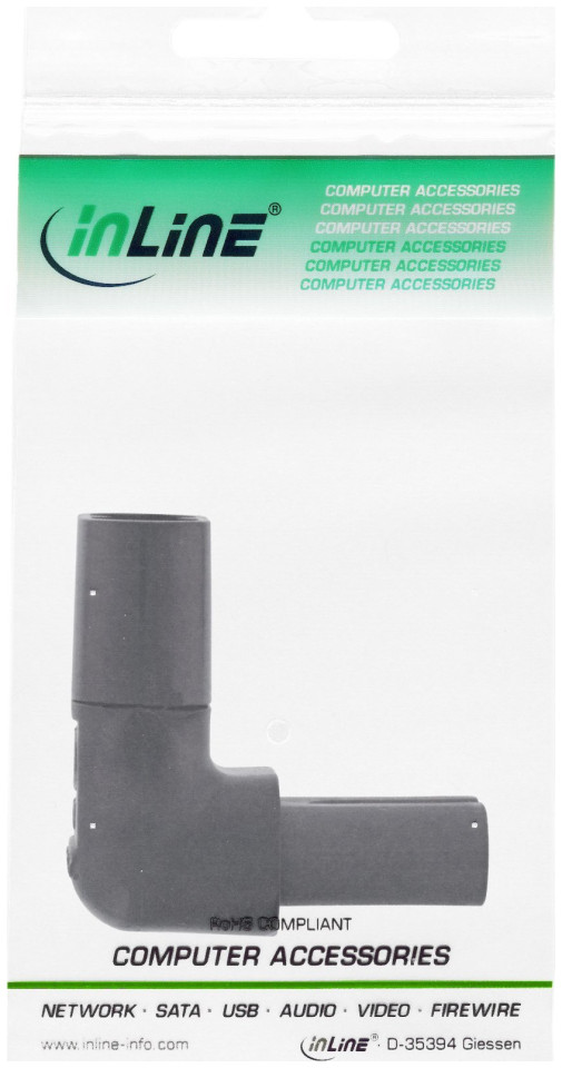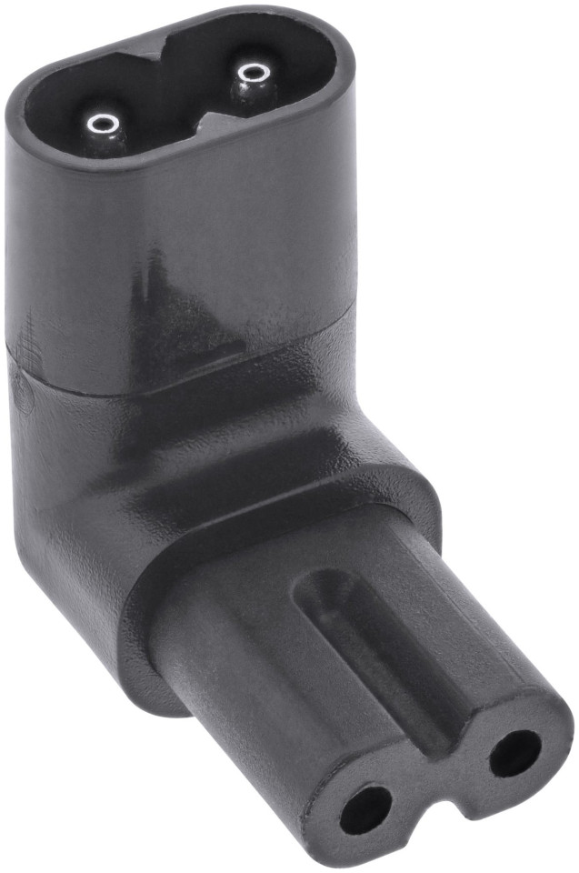 MODIFIED ANGLE POWER SUPPLY 2 PINS INLINE BLACK Τροποποιημένος προσαρμογέας ρεύματος για συσκευές σύμφωνα με το πρότυπο IEC 60320 Τροποποιημένη πρίζα IEC 60320 Type C8 για IEC 60320 Type C7 βύσμα Τροποποιημένη έκδοση λυγισμένη στις 90° στο επάνω/κάτω αντιστοίχιση Τροποποιημένο μέγιστο ρεύμα: 2,5 A Τροποποιημένο χρώμα: μαύρο