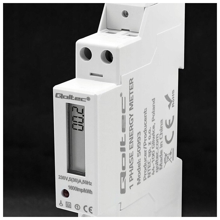 Μονοφασικός ηλεκτρονικός μετρητής | μετρητής κατανάλωσης ενέργειας για ράγα DIN | 230V | 30A | LCD | 1P