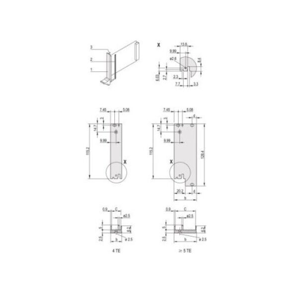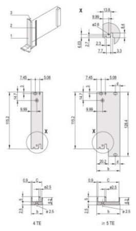 SCHROFF SCHROFF μονάδα ένθετου μπροστινού πίνακα προφίλ U για IEL, IET, τύπος 2, 3 HU, 8 HU, 0,1 offset, 2,5 mm, Al