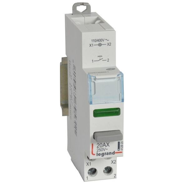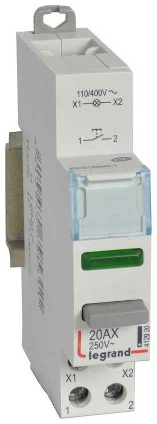 Legrand Μονοσταθής διακόπτης κουμπιού 20A, NO+LED, με πράσινη λυχνία, 110/400V