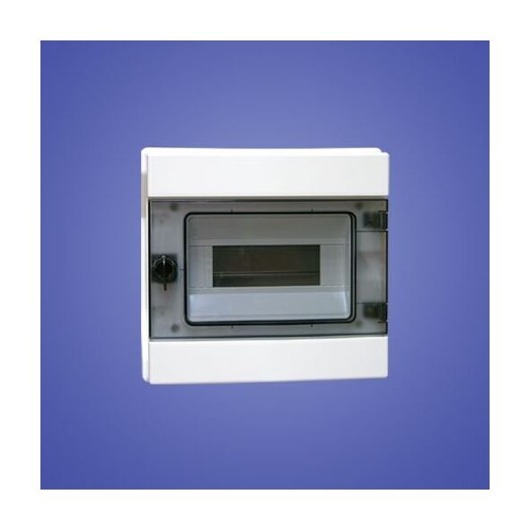 πίνακες διανομής εξοπλισμένοι με διαφανείς, φιμέ πόρτες που ανοίγουν στο πλάι (αριστερά ή δεξιά), προσαρμοσμένοι για την τοποθέτηση κλειδαριάς,