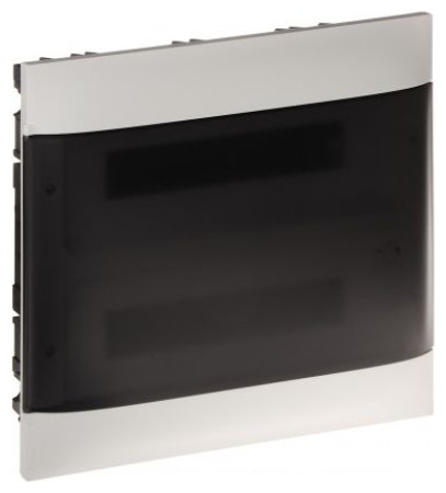 Legrand Rozdzielnia Rozdzielnica podtynkowa PRACTIBOX S 2x18 137377 Rozdzielnica wnękowa Practibox S 2x18 z drzwiami przezroczystymi Charakterystyka ogólna Rozdzielnice wnękowe Practibox S Zgodność z normami IEC/EN 60670-24: pozwalają na utworzenie zestawów zgodnych z normami IEC/EN 61439-3 Stopień ochrony: IP 40 - IK 07 II klasa ochronności Materiał izolacyjny, samogasnący - 650⁰C Wyposażone w listwy przyłączeniowe N i PE Do ścian pełnych Parametry produktu Rozdzielnica wnękowa Practibox S 2x18 z drzwiami przezroczystymi Ilość rzędów: 2 Ilość modułów w rzędzie: 18 Łączna liczba modułów: 36 Wysokość: 385 mm Szerokość: 436 mm Głębokość skrzynki: 72 mm Dostarczane z drzwiami przezroczystymi, dymnymi Dostarczane z listwami N+PE: N: 2 x (1x25 mm2 + 12x16 mm2) PE: 1 x (1x25 mm2 + 26x16 mm2) .