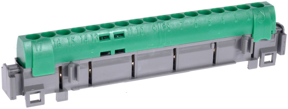 Λωρίδα σύνδεσης πράσινη 17 οπών IP2xZ17 (004835) Τεχνικά στοιχεία: χρώμα: πράσινο τροφοδοτικό - αριθμός ακροδεκτών 6-25 mm2: 1 αποχετεύσεις - αριθμός ακροδεκτών 1,5-16 mm2: 16 μήκος: 141 mm{Type} Λωρίδες ακροδεκτών