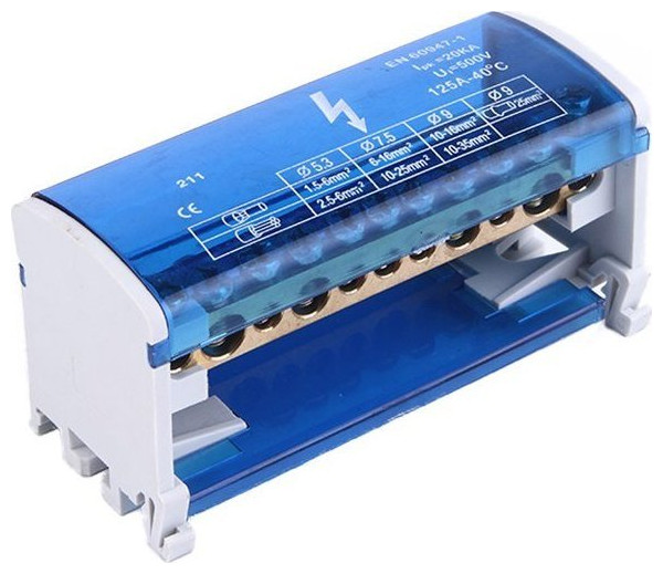 Το μπλοκ διανομής Orno OR-LZ-8201/11 διαθέτει 2 τερματικές ράγες στο περίβλημα. Θα χρησιμοποιηθεί σε ηλεκτρικούς πίνακες, διευκολύνοντας την κατανομή των δυναμικών και την καλωδίωση. Τοποθετείται σε ράγα DIN ή πλάκα στερέωσης Τύπος τεχνικών δεδομένων: αριθμός μπλοκ διανομής συρμάτων: 11 αριθμός σιδηροτροχιών: 2 αγώγιμα υλικά: ακροδέκτες εισόδου ορείχαλκου: 7x 1,5-6, 2x 10-16 mm2 χρώμα. : μπλε / γκρι τοποθέτηση: σε ράγα DIN / διαστάσεις πλάκας τοποθέτησης: 100 x 42 x 50 χλστ