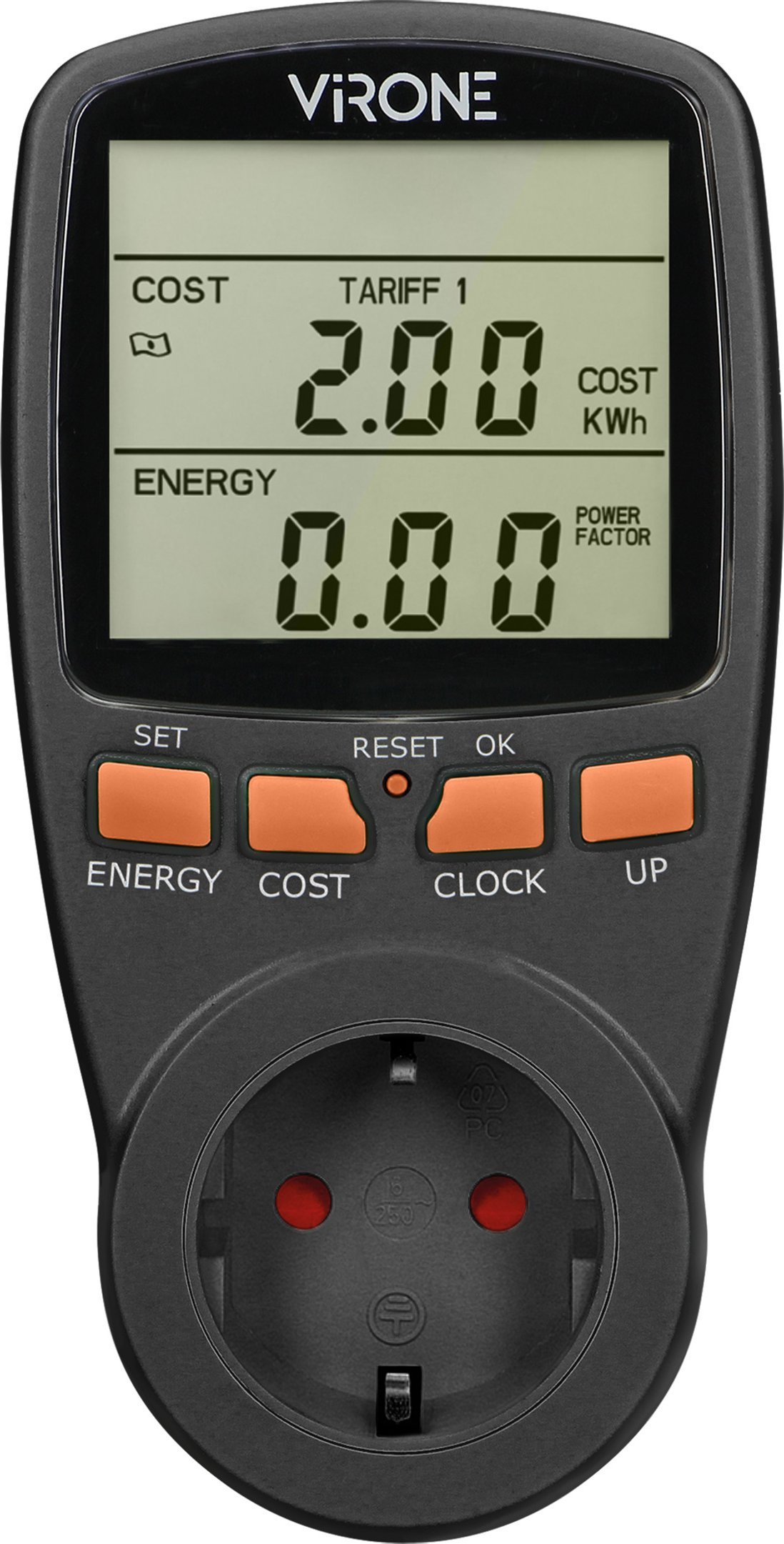 Orno Διπλής τιμολόγησης μετρητής ισχύος, υπολογιστής ενέργειας με οθόνη LCD, 2 ξεχωριστές τιμές, εσωτερική μπαταρία, έκδοση Schuko, μαύρο