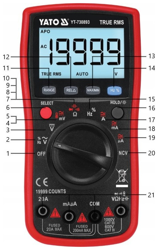 Yato YT.TRUE RMS LCD DIGITAL METER 19999