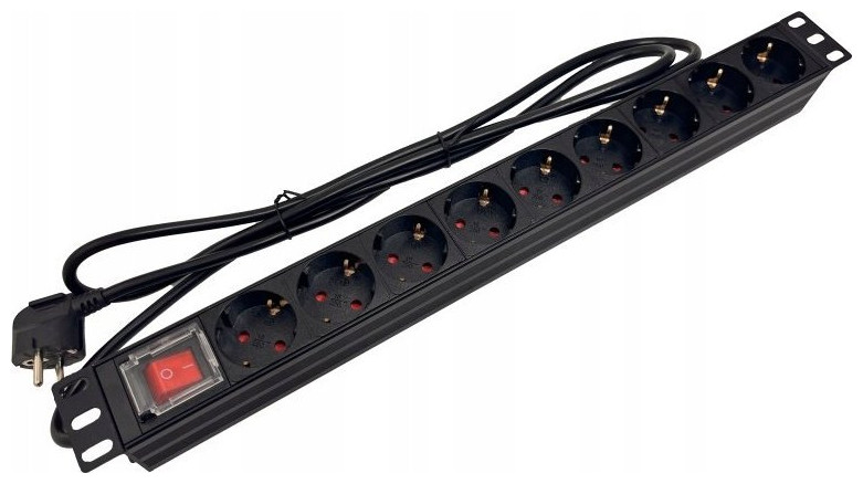 Alantec Πολύπριζο 19" 230V - 9 υποδοχές (τύπου F - CEE 7/3 schuko), με διακόπτη LED, καλώδιο 1,8m CEE 7/7