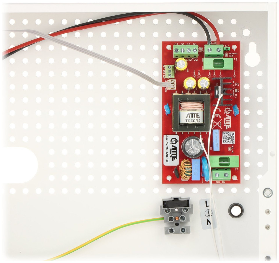 Αποδοτικότητα σηματοδοσίας LED: 90% @ 70W τύπου OC τεχνικές έξοδοι σηματοδότηση απώλειας τάσης στην έξοδο τροφοδοσίας (OUF) και απώλεια τάσης στο δίκτυο 230V (ACF) Είσοδοι κύριων καλωδίων στο πίσω μέρος του περιβλήματος Σύστημα τοποθέτησης μονάδας Raster (συμβατό με ATTE συσκευές) - 10,8 mm raster Τοποθέτηση σε τοίχο Για εσωτερική χρήση Κατηγορία στεγανότητας: IP20 Ασφάλεια:
