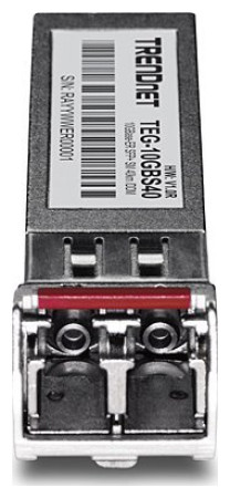 Trendnet TEG-10GBS40. Τύπος πομποδέκτη SFP: Οπτική ίνα, Μέγιστος ρυθμός μεταφοράς δεδομένων: 10000 Mbit/s, Τύπος διεπαφής: SFP+. Πιστοποιητικά: CE, FCC. Κατανάλωση ισχύος: 0,581 W. Πλάτος προϊόντος: 14,8 mm, Βάθος προϊόντος: 56,5 mm, Ύψος προϊόντος: 11,8 mm