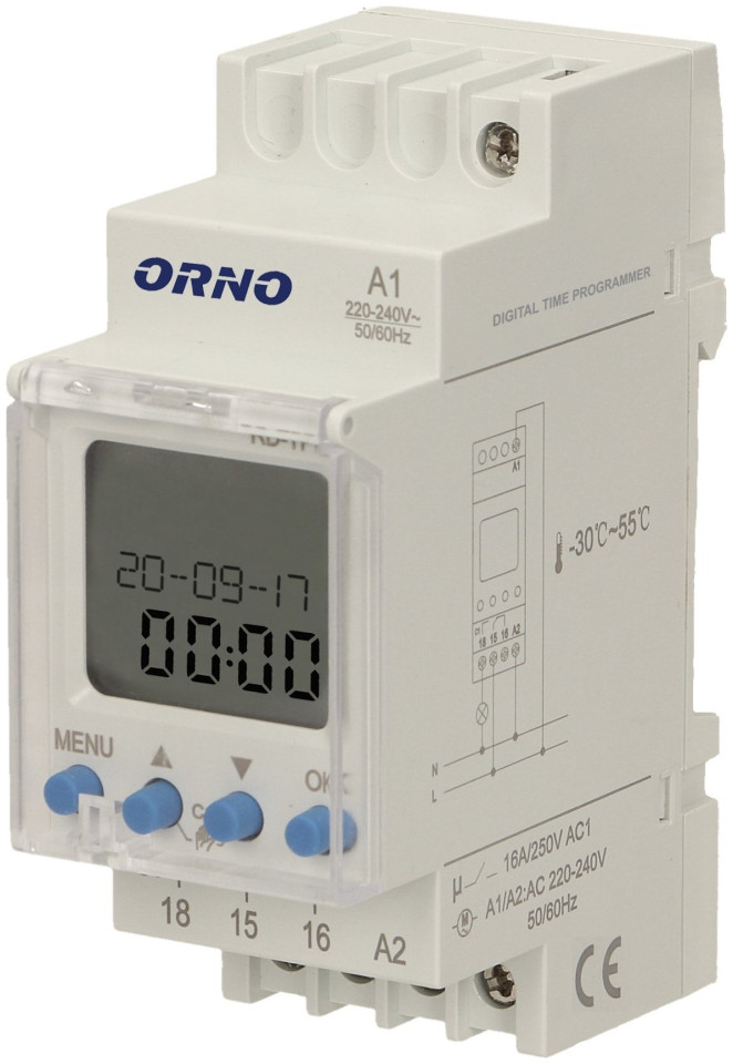 Wielofunkcyjny programator czasowy przydatny w każdym domu i firmie, przeznaczony do montażu na szynie DIN. Pozwala w prosty sposób zaoszczędzić energię elektryczną i ułatwić użytkowanie różnych urządzeń elektrycznych . Wbudowany zegar astronomiczny oblicza czas wschodu i zachodu słońca w ustalonym obszarze geograficznym i strefie czasowej. Programator włącza i wyłącza dopływ prądu w określonym przedziale czasowym, a 52 punkty przełączania umożliwiają dopasowanie ustawień do indywidualnych potrzeb. Rodzaje programów: tygodniowy, roczny i astronomiczny. Tryby działania: ręczny, automatyczny, wakacyjny, losowy. Automatyczne przełączanie czasu zimowego. Urządzenie idealne do sterowania pracą oświetlenia, ogrzewacza wody, silników, pomp itp. Posiada wbudowaną baterię, która podtrzymuje ustawienia zegara w przypadku wyłączenia zasilania elektrycznego.