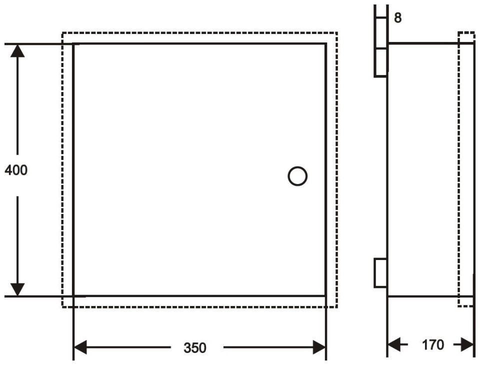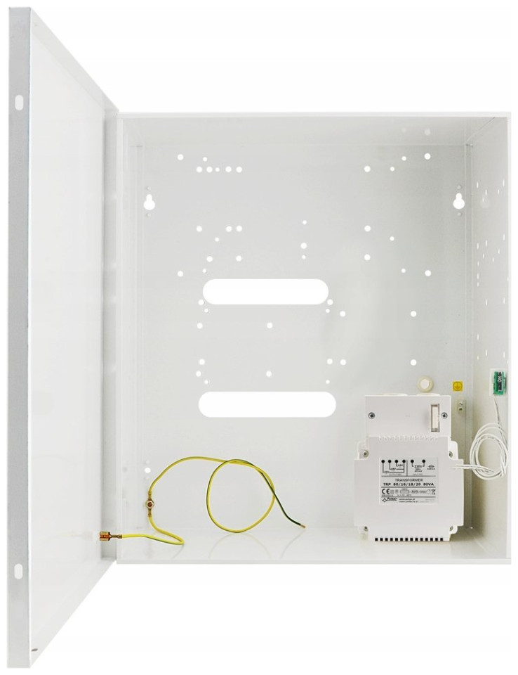Etui ALARM 24/TRP80/DS AWO301 PULSAR Obudowa dla centrali:Obudowa dla centali: DSC: 1) PC1616, 1832, 1864, 4020, 6010, 4x (4108, 5108, 6108, 5100, 4116, 5208) + 3x (5204, 5400, 5200, 5580, 4216, 6216, 6400) MODUŁY: 1) (4204, 6204) + 4x (4108, 5108, 6108, 5100, 4116, 5208) + 3x (5204, 5400, 5200, 5580, 4216, 6216, 6400) 1) CA10, VERSA10,15, INTEGRA 24, 32, 64, 128 + 6x CA64E (SM) 2) CA10, VERSA10,15, INTEGRA 24, 32, 64, 128 + 5x CA64 (EPS, O-OC, O-ROC, O-R, VGM- 16, SR, ADR, ACC-KP-PS) 3) 6x CA64 (EPS, O-OC, O-ROC, O-R, VGM- 16, SR, ADR, ACC-KP-PS) 3x CA64 (PP, OPS-OC, OPS-R, OPS-ROC) + CA64 (EPS, O-OC, O-ROC, O-R, VGM-16, SR, ADR, ACC-KP-PS) + 3x CA64E (SM)SPECYFIKACJA TECHNICZNA: Wymiary: W=320, H=400, D+D1=170+8 [+/-2 ] Wymiary zewnętrzne czołówki: W1=355, H1=405 [+/-2 mm] Waga netto/brutto: 6,08kg / 6,35kg [+/-0,1kg] Miejsce na akumulator: 24Ah/12V ołowiowo-kwasowy suchy (SLA) Transformator: TRP 80VA/16V/18V/20V w obudowie PC/ABS w klasie UL94- V0, IP30 Zasilanie: 230V/AC (-15%/+10%), 50Hz, 400mA (max.) Wyjście zasilania: U1=16V/AC lub U2=18V/AC lub U3=20V/AC(-5%,+15%), I1=5,0A lub I2=4,5A lub I3=4,0A (max.) Warunki pracy: II klasa środowiskowa, -10°C÷ 40°C Wykonanie: blacha DC01, grubość: 0,7mm, zabezpieczenie antykorozyjne, kolor: RAL 9003 Zastosowanie: do wewnątrz Zabezpieczenie antysabotażowe: 1 x mikrowyłącznik: otwarcie obudowy, 0,5A@50V/DC max. NC- styki normalnie zwarte Zamykanie: skręcana: blacho-wkręt x 4 Kod producenta: AWO301 / AWO301