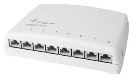 Mini dystrybutor TELEGRTNER TH35/AP, biały alpejski, MPD8-HS K Cat.6A