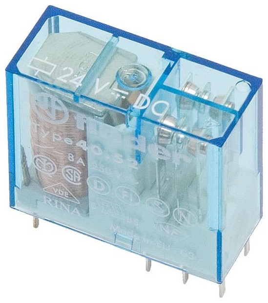 Przekaźnik F40.52.9.024 FINDERDANE TECHNICZNE:- Imax: 15A- Umax: 36V DC- R cewki: 900Ω- Temperatura pracy °C: –40…+85- Trwałość mechaniczna: 20 x 106 przełączeń- Ilość par zestyków: 2- Wymiary: 29x25x12,4mm