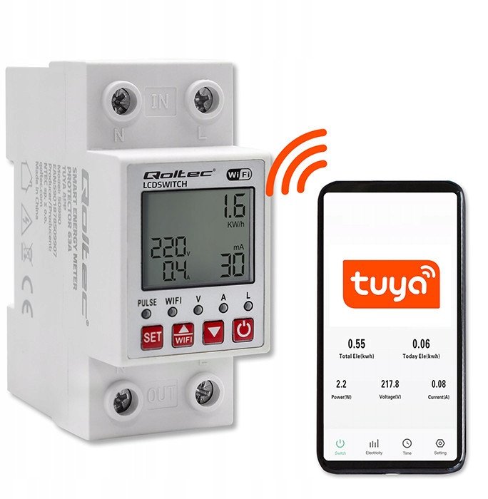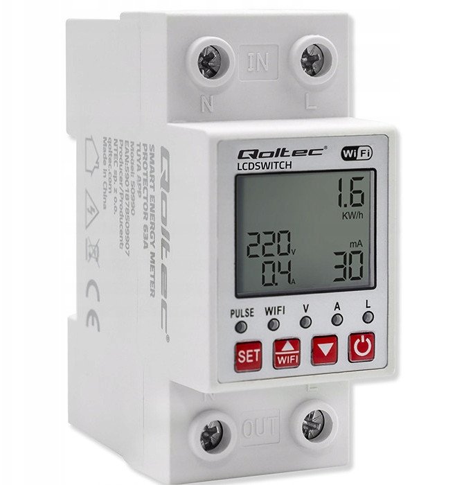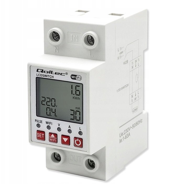 QOLTEC Ρελέ 63A σε ράγα DIN με μετρητή ηλεκτρικής ενέργειας | Χρονοδιακόπτης | Tuya | Wi-Fi | LED
