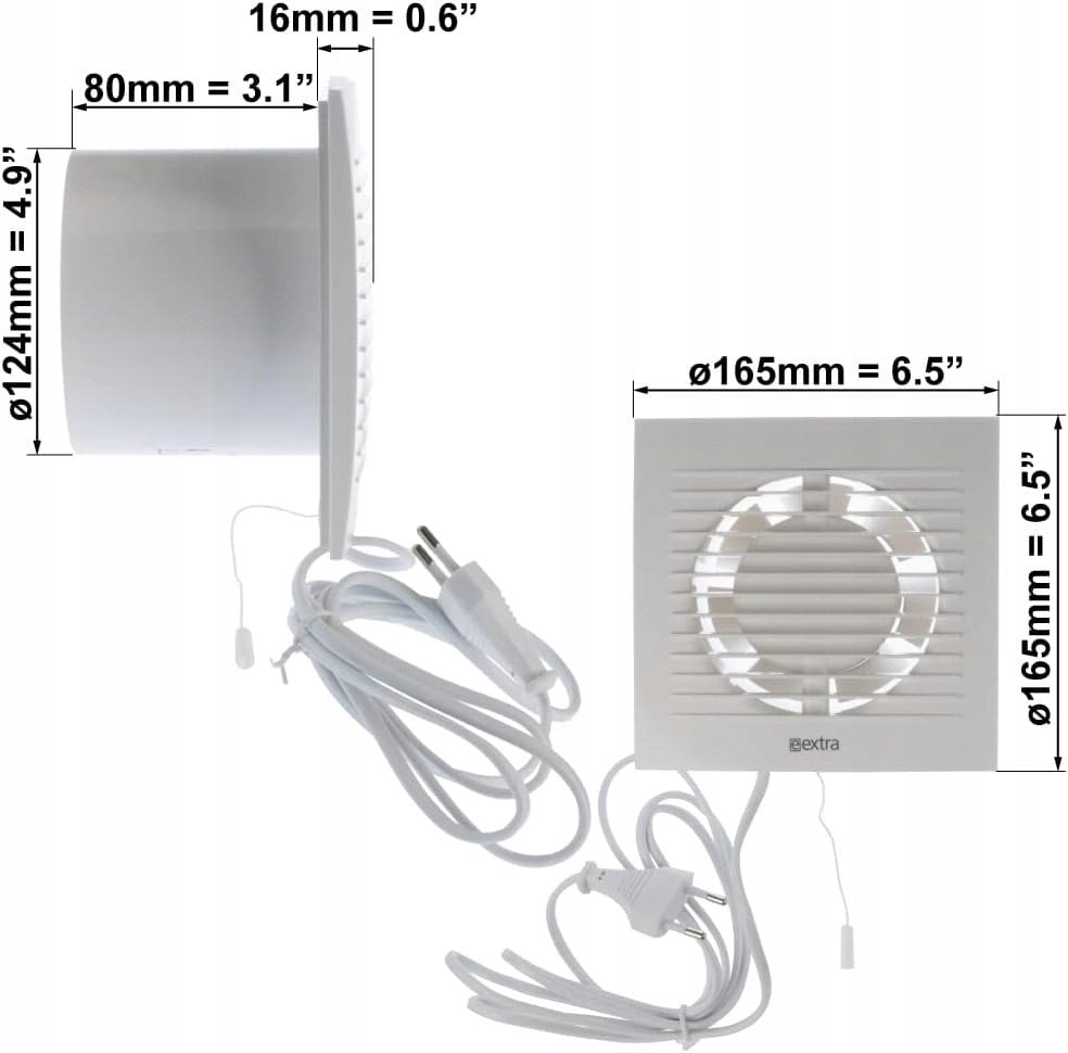 Ανεμιστήρας οικιακής χρήσης EUROPLAST E-Extra EE125WP, 125mm, με καλώδιο και διακόπτη