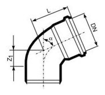 HTB elbow DN 160mm (11220) Διαστάσεις: DN: 160mm Γωνία: 45ο Ζ1: 50 χλστ Μ: 131 χλστ{Type} Εσωτερικό . {Type} Εσωτερικό . {Τύπος} Γόνατα . {Τύπος} Γόνατα