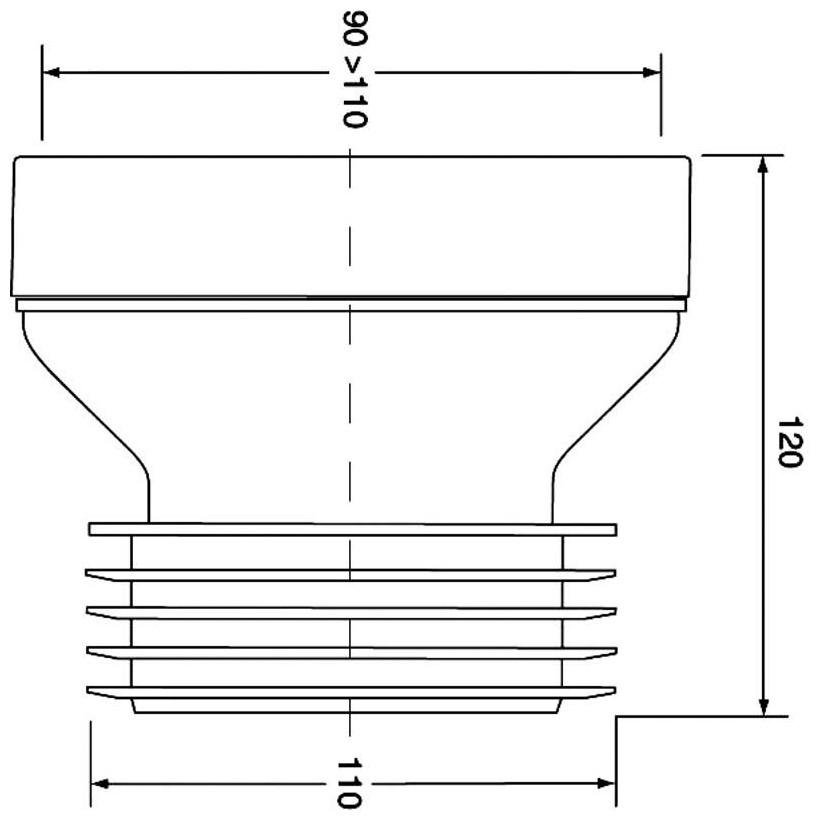 Κοντή, ευθεία σύνδεση λυμάτων L-120mm Είσοδος 90-110mm με στεγανοποιητικό χείλος, έξοδος 110mm με φλάντζα.