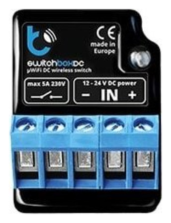 Blebox SwitchBoxDC 12/24v ελεγκτής μονάδας διακόπτη switchBoxDC είναι ένας μονοκάναλος διακόπτης χαμηλής τάσης (12/24V) που σας επιτρέπει να ενεργοποιείτε/απενεργοποιείτε τις περισσότερες ηλεκτρικές συσκευές όπως αερισμό, θέρμανση, φωτισμό εντός και εκτός κτιρίων, ηλεκτρονικά/οικιακές συσκευές. Χρησιμοποιώντας τη δωρεάν εφαρμογή wBox, μπορείτε να ελέγχετε συσκευές στο σπίτι, τον κήπο ή την εταιρεία σας - τόσο εντός της εμβέλειάς τους όσο και από οπουδήποτε στον κόσμο - χωρίς πρόσθετες συσκευές - το μόνο που χρειάζεστε είναι ένα οικιακό δίκτυο WiFi. ΠΡΟΔΙΑΓΡΑΦΕΣ Τάση τροφοδοσίας: 12-24V DC Κατανάλωση ισχύος: κάτω από 1W Αριθμός εξόδων: 1 Τύπος εξόδων: ρελέ Αριθμός εισόδων: 1 Τύπος εισόδων: λογική, βραχυκυκλωμένη στη γείωση Περίβλημα: κατασκευασμένο από σύνθεση πολυουρεθάνης χωρίς αλογόνο, αυτοσβενόμενο για θερμική κατηγορία Β (130 °C) Κατηγορία IP: IP20 Διαστάσεις: 27 x 37 x 23 mm Τοποθέτηση: σε χωνευτό κουτί (βαθυμένο ή διπλό), στο περίβλημα του δέκτη. Μετάδοση: αμφίδρομη με επιβεβαίωση, κρυπτογραφημένη Συχνότητα μετάδοσης: 2,4 GHz Πρότυπο μετάδοσης: μWiFi, συμβατή με WiFi Λειτουργία επικοινωνίας: άμεση σύνδεση (ως σημείο πρόσβασης), σύνδεση WiFi μέσω τυπικού δρομολογητή, σύνδεση με πρόσβαση από οπουδήποτε στον κόσμο (μόνο πρόσβαση στο Διαδίκτυο ) Μπορείτε να ελέγξετε: Apple iPhone, Apple iPad, iPad Mini, Android, υπολογιστές και κινητές συσκευές που υποστηρίζουν κρυπτογράφηση HTML5: WPA2-PSK και επικυρωμένη κρυπτογράφηση (AEAD) Εσείς αποφασίζετε... να ενεργοποιήσετε όλες τις ηλεκτρικές συσκευές με το smartphone σας, να περιορίσετε την πρόσβαση των παιδιών στην τηλεόραση ή την κονσόλα εκτός καθορισμένων ωρών, να ενσωματώσετε εξωτερικά συστήματα - άρδευση, συναγερμό ή κλιματισμό με το σύστημα BleBox, χρησιμοποιήστε το πρόγραμμα εργασιών για αυτοματοποίηση πολλές δραστηριότητες, εξοικονόμηση χρόνου και χρημάτων ΑΣΦΑΛΕΙΑ Η χαμηλή τάση τροφοδοσίας επιτρέπει την ασφαλή χρήση και σε μέρη που εκτίθενται σε εξωτερικούς παράγοντες, π.χ ντους ή πισίνα. ΔΥΝΑΤΟΤΗΤΕΣ Η πρόσθετη δυνατότητα σύνδεσης ενός κουμπιού σας επιτρέπει επίσης να ελέγχετε έναν τοπικό διακόπτη. για να αποφύγετε την εκτέλεση καλωδίων στο κουμπί, μπορείτε να το συνδέσετε ασύρματα - χρησιμοποιώντας το inBox. ΑΛΛΑ ΣΥΣΤΗΜΑΤΑ Χρησιμοποιώντας το switchBoxDC, μπορείτε εύκολα να ελέγξετε άλλα συστήματα - τόσο έξυπνα οικιακά συστήματα όσο και συστήματα συναγερμού και συστήματα άρδευσης. ΕΞΟΔΟΣ ΧΩΡΙΣ ΔΥΝΑΜΙΚΟ Η επαφή χωρίς δυναμικό σας επιτρέπει να αλλάζετε ηλεκτρικά φορτία σε οποιαδήποτε τάση 0 - 230 V AC και 0 - 30 V DC - εξασφαλίζοντας, μεταξύ άλλων, δυνατότητα ενσωμάτωσης με συσκευές συναγερμού, κλιματισμό ή αντλία θερμότητας.