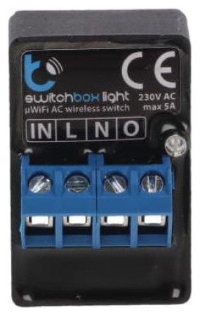 BLEBOX switchBox LIGHT Διακόπτης για συσκευές 230V Το SwitchBox LIGHT είναι ο μικρότερος ελεγκτής στον κόσμο που σας επιτρέπει να ενεργοποιείτε και να απενεργοποιείτε ασύρματα ηλεκτρικές συσκευές που τροφοδοτούνται από τάση δικτύου 230V με ισχύ έως και 1kW από οπουδήποτε στον κόσμο.