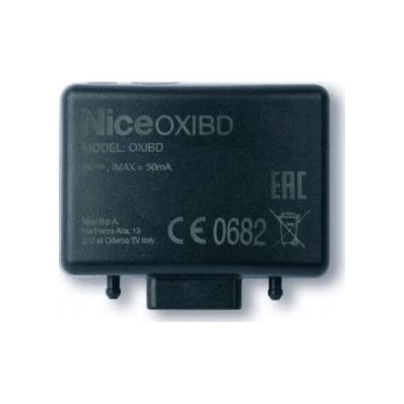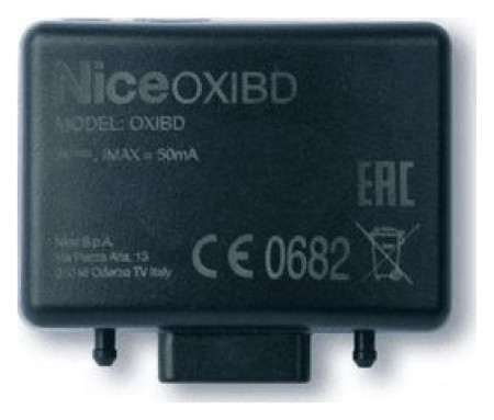 Telewizor dwukierunkowy, wewnętrzny NICE OXIBDOdbiornik wtykowy, dwukierunkowy, z funkcjami systemu Opera. Oxi BD jest kompatybilny ze wszystkimi centralami sterującymi Nice wyposażonymi w gniazdo SM, pozwala więc na uzyskanie dwukierunkowości już istniejącej automatyki Nice. Ergonomia - Wygodna i praktyczna pozycja łączników anteny, przycisku i diody LED programowania. Maksymalna elastyczność - Zapisują do 750 nadajników dwukierunkowych lub 1024 nadajników jednokierunkowych. Telewizory Oxi BD mogą być używane jako przekaźniki sygnału, zwiększając w ten sposób zasięg funkcjonowania nadajników i innych telewizorów dwukierunkowych Nice. Łatwy w instalacji - Dwukierunkowy telewizor plug-in Oxi BD został zaprojektowany dla ułatwienia instalacji. Wystarczy tylko wyciągnąć stary telewizor jednokierunkowy z centrali sterowania i wymienić go na nowy Oxi BD. Kompatybilny z poprzednimi wersjami telewizorów wtykowych i zewnętrznych Nice w trybie jednokierunkowym z kodem dynamicznie zmiennym.Dane techniczne: Typologia: telewizor dwukierunkowy Kodowanie: „BD” / „O-code” / „FloR” / „TTS” / „Flo” / „Smilo” Impedancja wejścia: 50 Ω Częstotliwość odbioru: 433,92 MHz Częstotliwość nadawania: 433,92 MHz (wyłącznie BD) Wyjścia: 4 (na złączu „SM” wtykowym) Czułość: -108 dBm Pobór prądu: 50 mA (maksymalnie) Moc wypromieniowana (ERP): Wymiary: 49,5x41,9x18 mm Masa: 22 g Temperatura robocza: -20°C +55°C W komunikacji radiowej jednokierunkowej, oba zaangażowane urządzenia (wyposażone w technologię radiową jednokierunkową) spełniają dobrze określoną rolę i jednoznaczną rolę wewnątrz systemu: tak więc mamy Nadajnik, który tylko przesyła oraz Odbiornik, który tylko odbiera. W ten sposób komunikacja radiowa odbywa się w sposób jednokierunkowy. Przeciwnie, w komunikacji radiowej dwukierunkowej oba urządzenia (wyposażone w radiową technologię dwukierunkową) przyjmują za każdym razem inną rolę w obrębie systemu, ponieważ każdy z nich jest w stanie odbierać i nadawać informacje z i w kierunku innego urządzenia. W związku z tym, również nadajniki stają się czasami „odbiornikami” informacji napływających z odbiornika znajdującego się w centrali sterującej. Telewizor OXIBD ma obie technologie radiowe, więc może się łączyć zarówno z nadajnikami jednokierunkowymi jak i dwukierunkowymi. przesłanie potwierdzenia (na nadajniku), że wysłane polecenie zostało otrzymane; przesłanie stanu (na nadajniku) w którym znajduje się automatyka (na przykład, czy brama jest otwarta czy zamknięta). Inne cechy produktu: Telewizor OXIBD jest kompatybilny z kodowaniem radiowym jednokierunkowym „O-Code”, „FloR”, „TTS”, „Smilo”, „Flo” i z kodowaniem dwukierunkowym „BD”. W szczególności, kodowanie „O-Code” i „BD” umożliwia wykorzystanie wszystkich zaawansowanych i funkcji Systemu „NiceOpera”. Jeśli odbiornik zawiera wyłącznie nadajniki jednokierunkowe, może zarządzać wszystkimi 1024 jednostkami pamięci: jedno miejsce może zapisać alternatywnie jeden nadajnik (jeśli jego przyciski zostaną zapisane jako „całość”, z procedurami w Trybie 1), lub jeden przycisk (jeśli zostanie on wczytany za pomocą procedur w Trybie 2). Jeśli odbiornik zawiera wyłącznie nadajniki dwukierunkowe, maksymalna liczba możliwych do wczytania nadajników dwukierunkowych wynosi 750. Każdy odbiornik posiada własny numer, który go identyfikuje, zwany „Certyfikat”. Umożliwia on uzyskanie dostępu do wielu działań, jak na przykład: wczytywanie nowych nadajników bez konieczności uzyskania dostępu do odbiornika, użycie programatora O-View poprzez połączenie „BusT4” do centrali. Ten telewizor może być używany wyłącznie z centralami sterującymi wyposażonymi w złącze wtykowe typu „SM”.