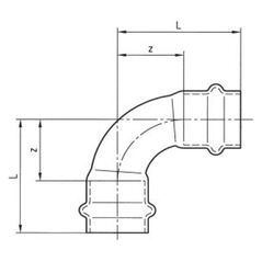 Σύνδεσμος Conex διπλού καμπύλου 90° mm από τη σειρά B Press χαλκού 28mm (P500202800000)