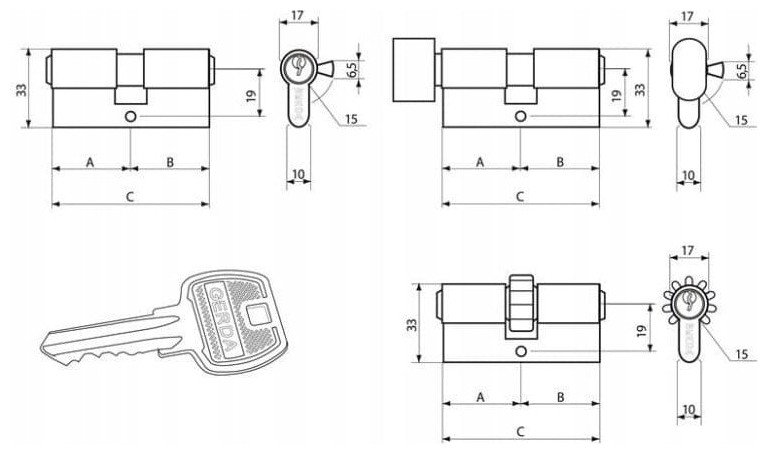 Κύλινδρος κλειδώματος GERDA, 40x50 mm, 3 κλειδιά, επινικελωμένος.