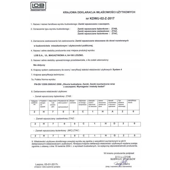 ΚΥΛΙΝΔΡΟΣ ΚΛΕΙΔΑΡΙΑΣ MORTISE Z7ABL 72/55 ΑΡΙΣΤΕΡΑ W ZN