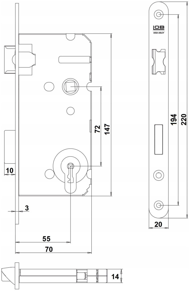 ΚΥΛΙΝΔΡΟΣ ΚΛΕΙΔΑΡΙΑΣ MORTISE Z7ABP 72/55 ΔΕΞΙΑ W ZN