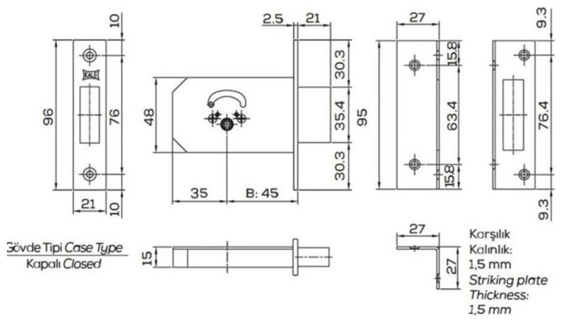 ΚΛΕΙΔΑΡΙΑ MORTISE KALE 156/F 5 ΚΛΕΙΔΙΑ