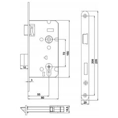 Κλειδαριά για πόρτα αλουμινίου 85/25/22