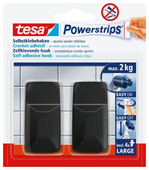 Tesa Αυτοκόλλητα άγκιστρα tesa POWERSTRIPS ορθογώνια 2kg, μαύρα