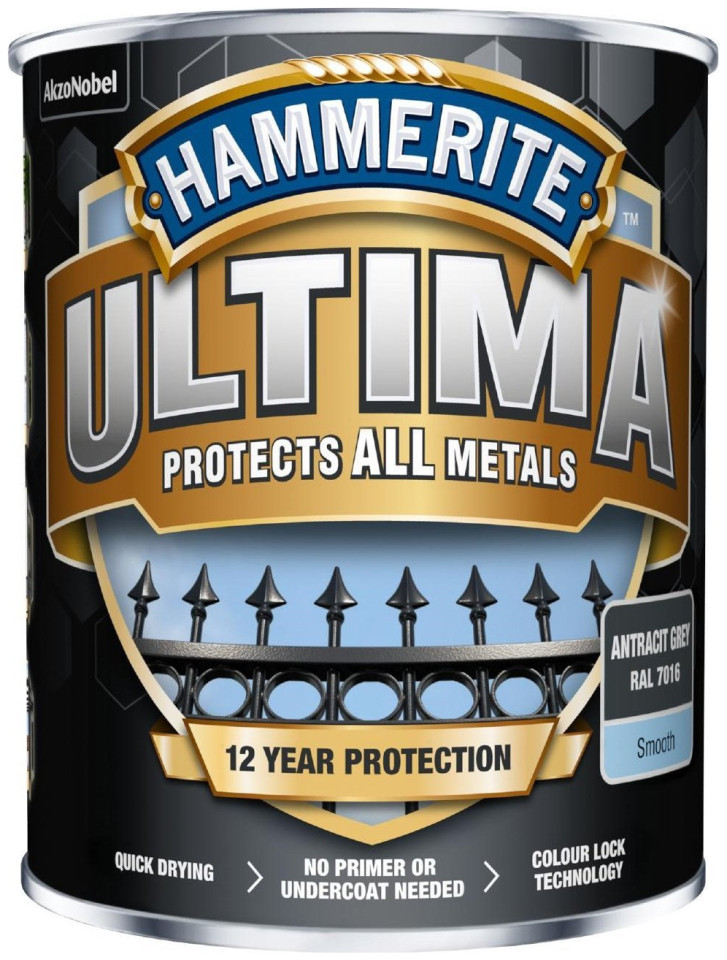 Hammerite Ultima Μεταλλική Βαφή - Ανθρακί Γκρι - RAL 7016 - 250 ml.