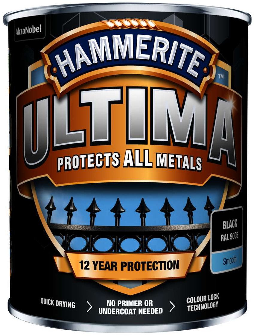 Hammerite Ultima Μεταλλικό Χρώμα - Μαύρο - RAL 9005 - 750 ml.