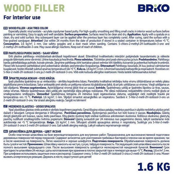 WOOD FILLER INTERIOR BRIKO ASH 1.6KG
