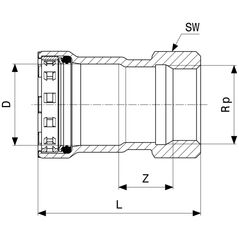 VIEGA Megapress μετάβαση 3/4"x3/4" θηλυκό/αρσενικό, μη κραματοποιημένος χάλυβας με επίστρωση ψευδαργύρου/νικελίου και SC-Contur